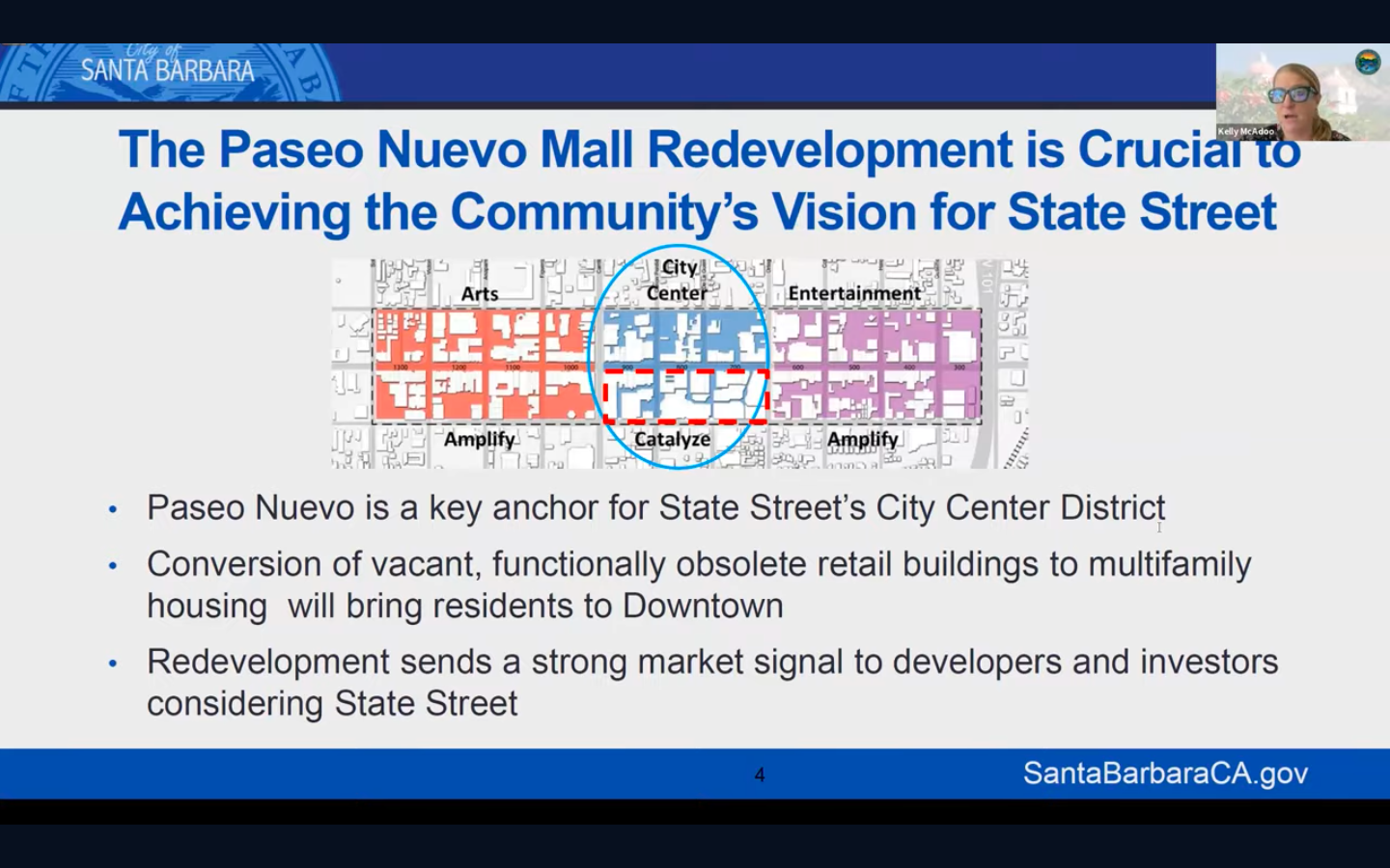 Thank you to those who joined us for our November South Coast SBCAN Roundtable featuring a presentation by Santa Barbara City Administrator Kelly McAdoo. McAdoo presented an overview of the proposal to transform Paseo Nuevo with a large-scale housing development.