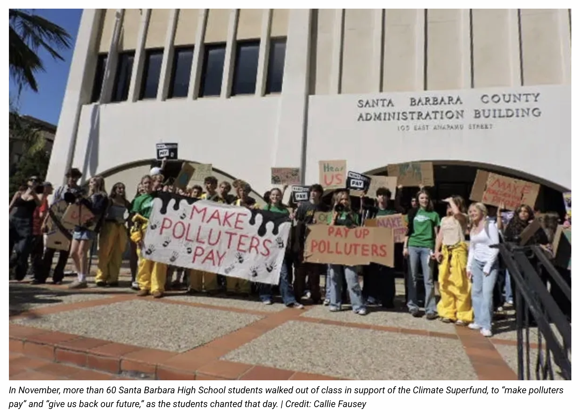 Santa Barbara City Council will consider a resolution in support of a Polluters Pay California Climate Superfund on Tuesday, March 10 at the 2pm meeting in Council Chambers at City Hall, 735 Anacapa Street, Santa Barbara.